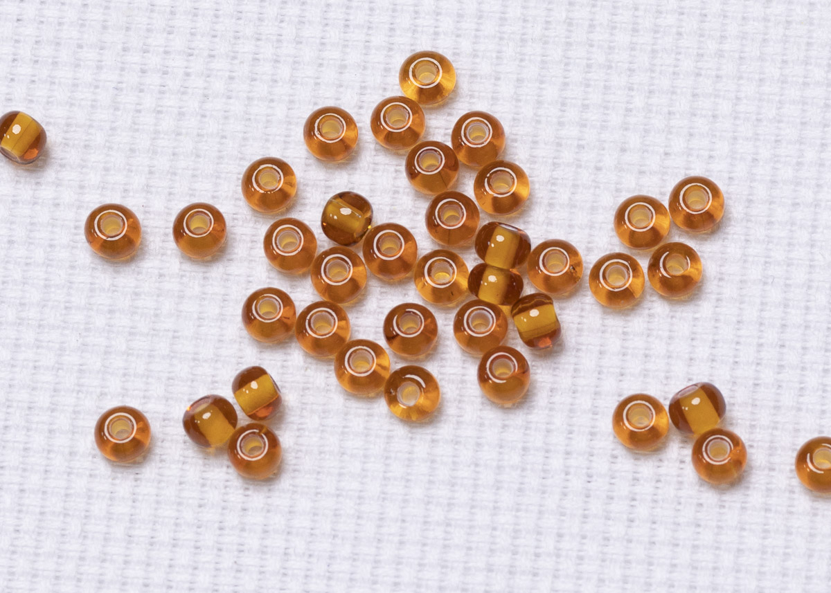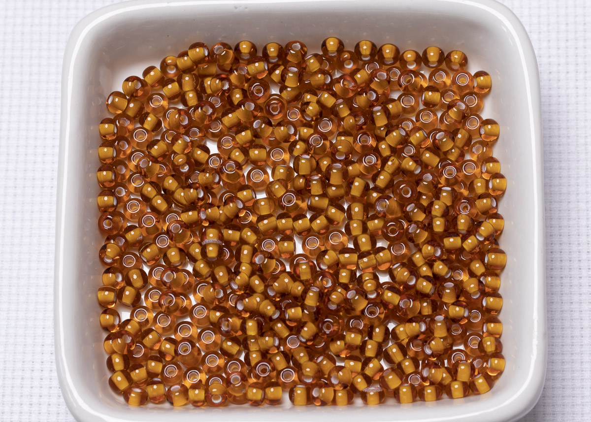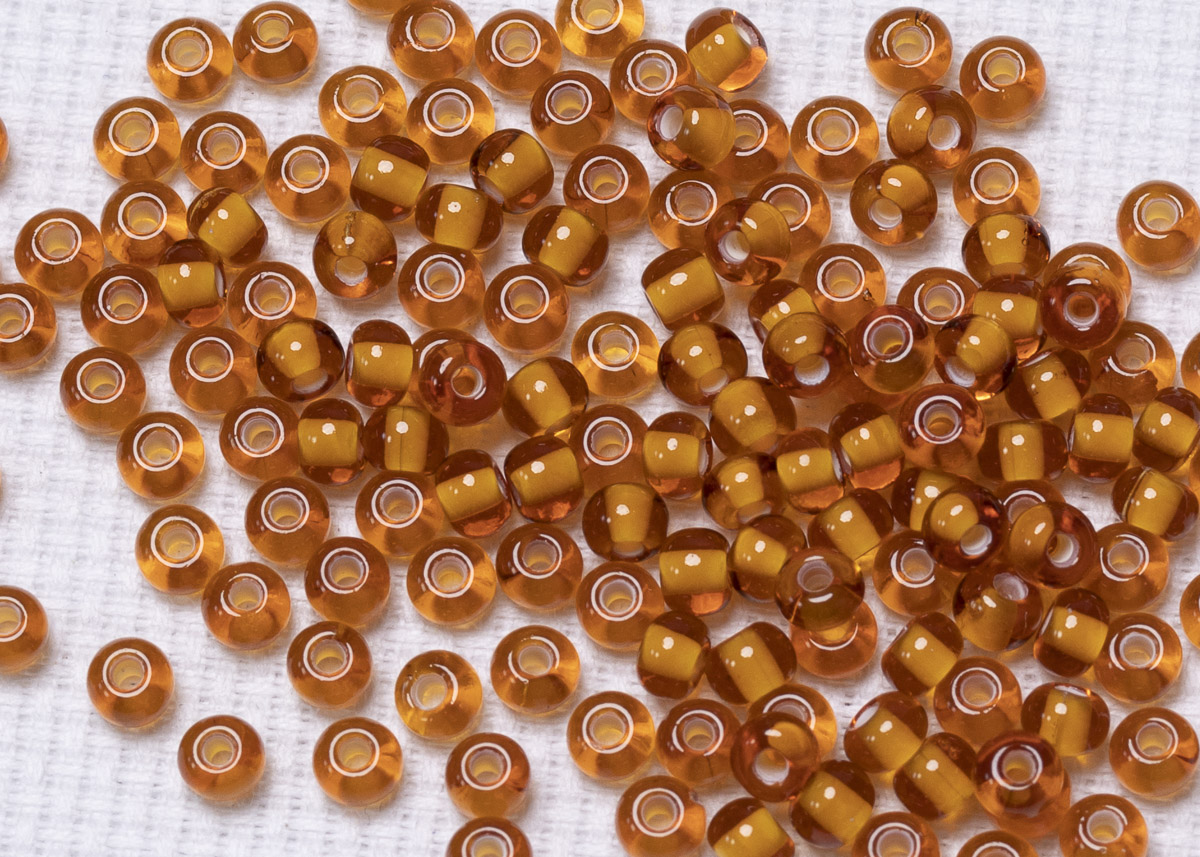 Бисер Чехия круглый 10/0 50 г 15096 темный янтарный, белая линия внутри