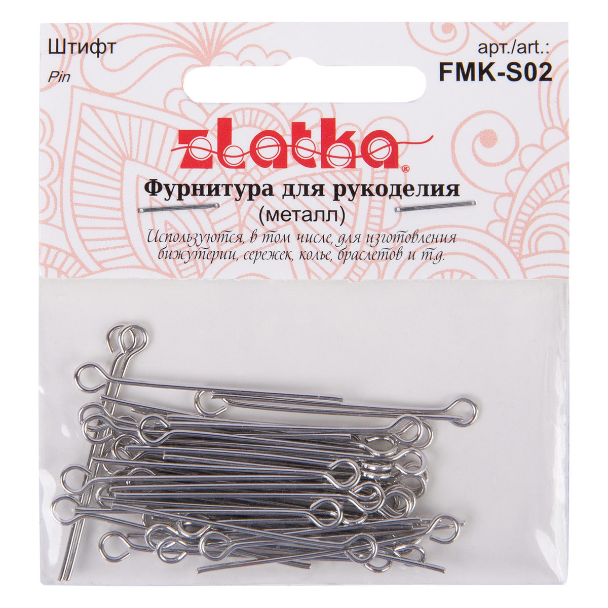 Штифт/ пин " Zlatka" FMK- S02 - применяется при сборке украшений. Например, позволяет превращать бусины в подвески или соединительные элементы. Пины с ушком " петелькой" - удобны для создания соединительных элементов: надев бусину и сделав вторую петельку с другой стороны. Также применяются для создания подвесок из бусин с одним не сквозным отверстием. Использование качественной фурнитуры играет очень важную роль при изготовлении бижутерии. От правильного выбора подвески, коннектора, замка или любой другой связующей части зависит целостность готового изделия. Длина штифта 30 ммРабочая длина штифта 26 ммМатериал: латуньНе содержит никель и свинецСообщить о неточности в описании